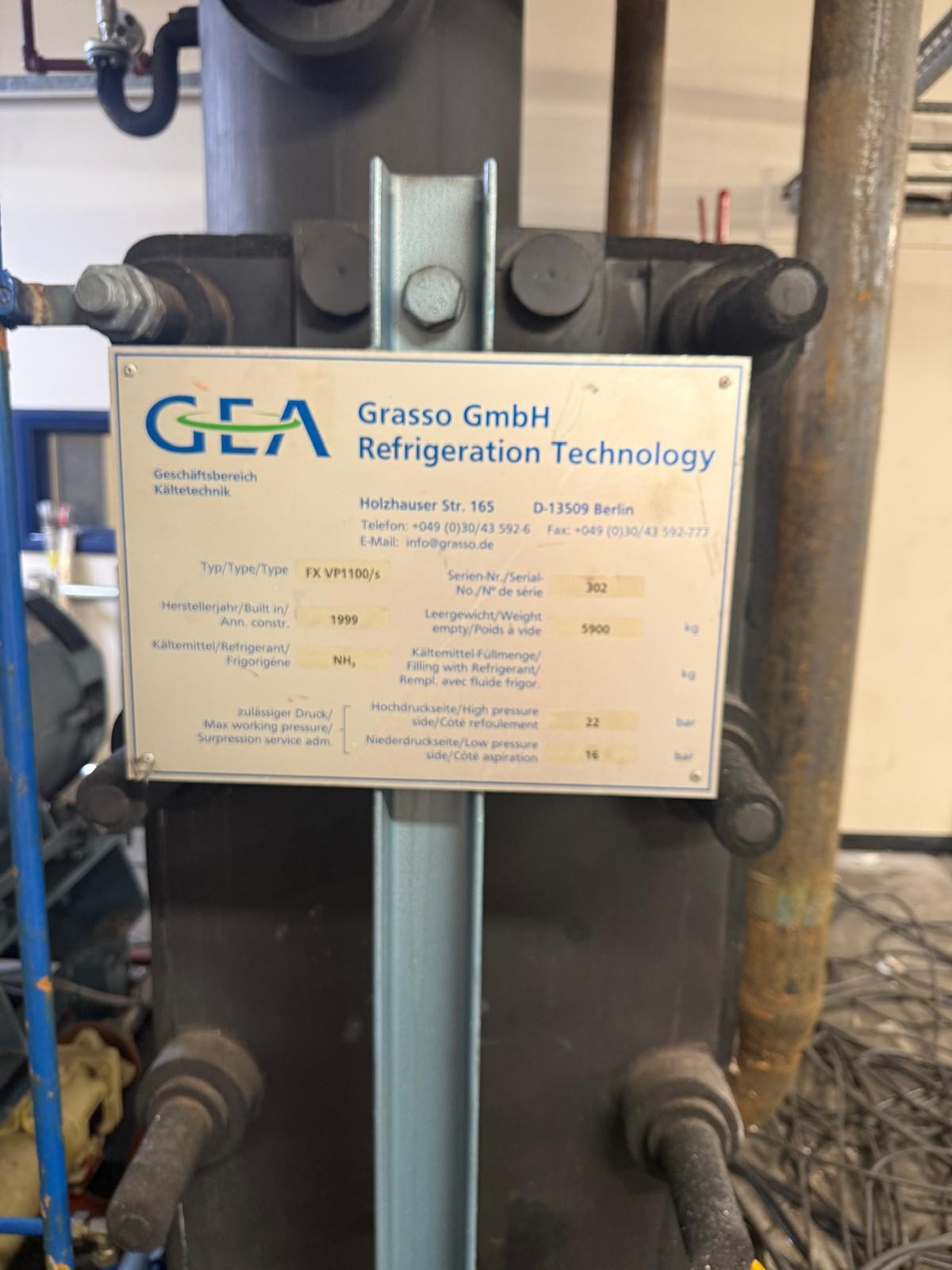 FX VP1100 glycol cooling plant last used to chill factory and storage